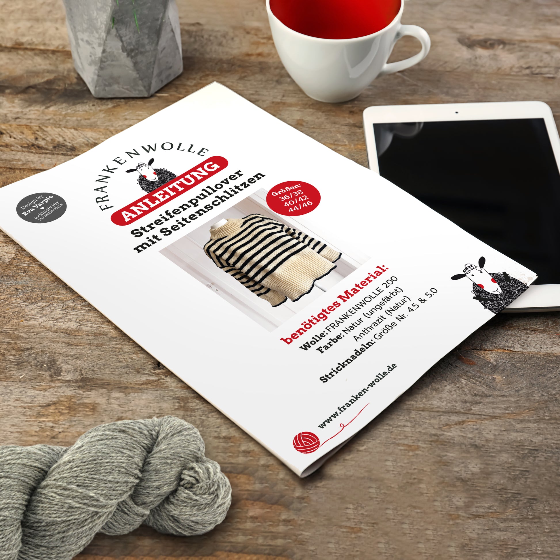 Strickanleitung für "Evas Streifenlpullover" Exklusives Design von Eva Varpio 200er FRANKENWOLLE als Download. In unserem Strickpaket liegt diese Anleitung natürlich bei.